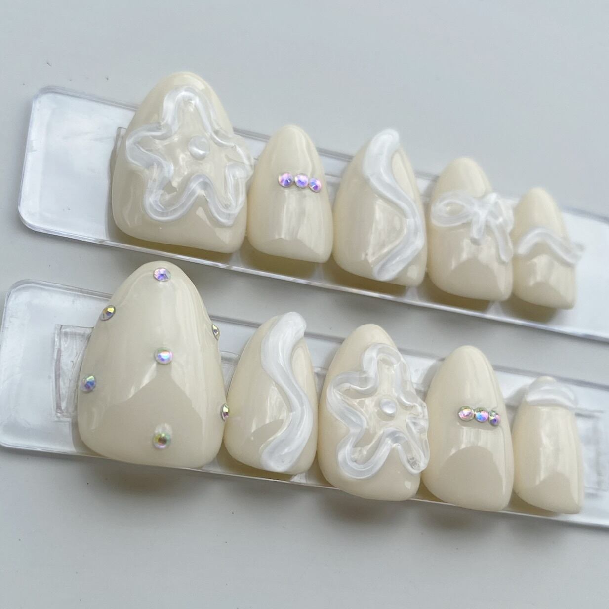 お爪のサイズにより、パーツなどが乗せきれない場合、少し変更になる可能性があります。